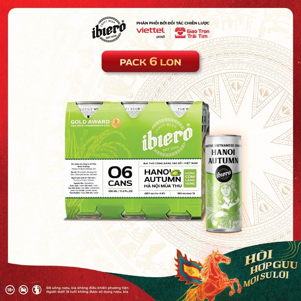 Trên nền Pilsner trứ danh thế giới, nguyên liệu Cốm làng Vòng, gạo tám thơm, lá nếp được nghệ nhân nấu bia iBiero sáng tạo nên hương vị độc bản của Hanoi Autumn (Bia Cốm). Vị bia thanh mát, thơm nhẹ và hậu vị ngọt ngào. Bia mang đậm bản sắc văn hóa người Việt với giá trị nâng tầm ẩm thực bản địa.